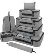 - 8-Piece Set: Includes packing cubes of various sizes, a shoe bag, a toiletry bag, and more.
