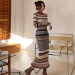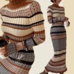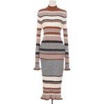 Tags: Fall Knitwear, Knitted Bodycon Dress, Long-Sleeve Dress, Mock Neck Dress, Striped Midi Dress